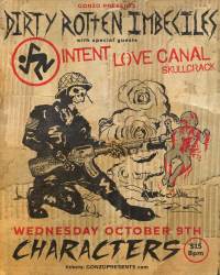 D.R.I. making their first Characters appearance with Intent.. 80s OGs Love Canal ..and Skullcrack.. this is gonna up close and in your face as it should be....