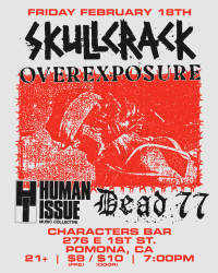 Friday February 18th the return of SKULLCRACK..Overexposure Along with local homies Dead77 and Human Issue plus special guests